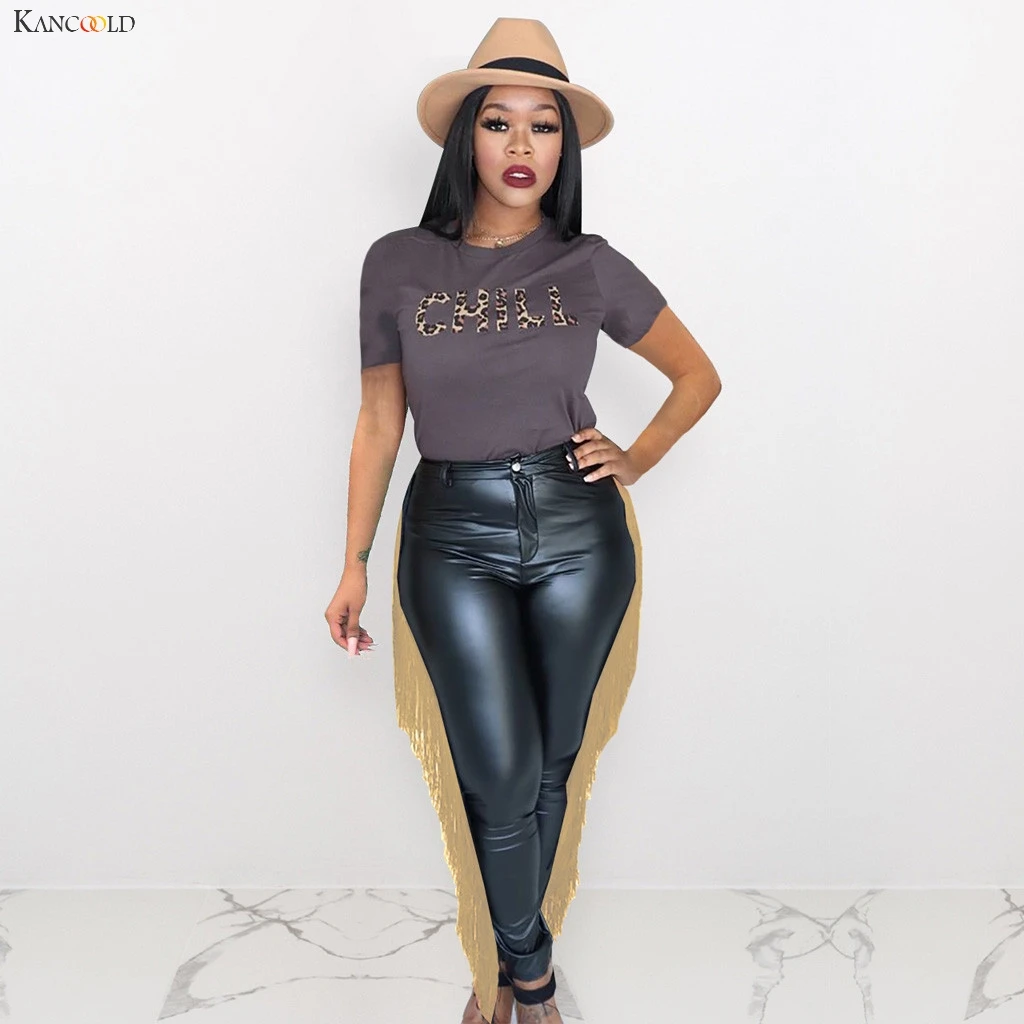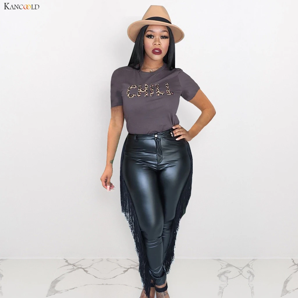 Cheap KANCOOLD pants Fashion Lady High Waist Leather Stretch Tassel Pencil Pants Casual Slim Trousers sex