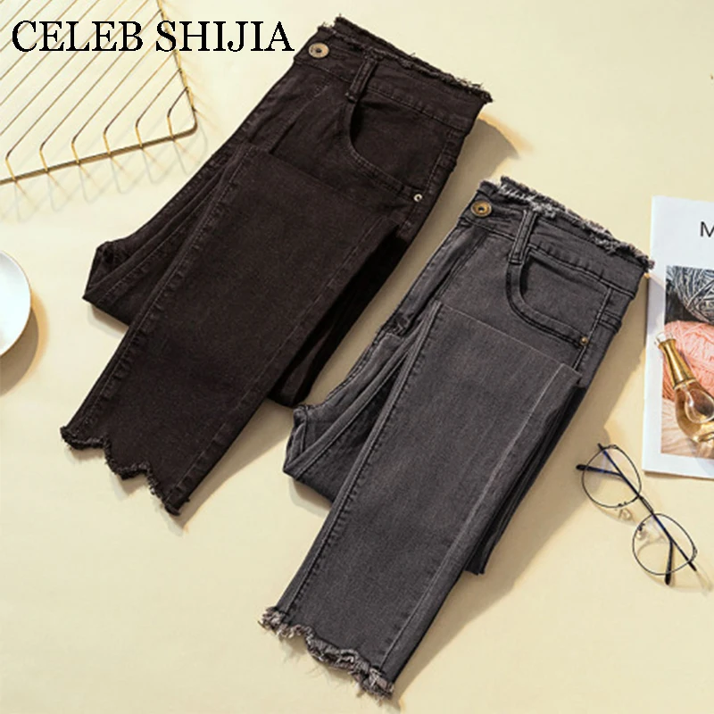 Discount 2019 Jeans for Female skinny plus size high elastic gray pencil pants for lady Donna summer autumn